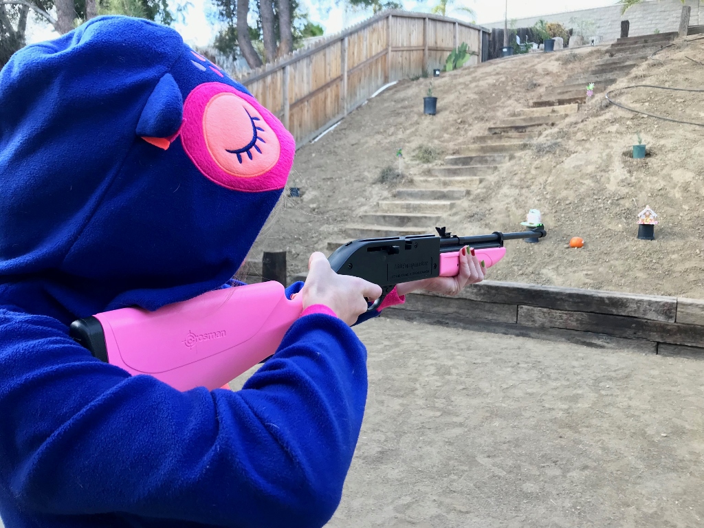 They have a tradition of shooting their gingerbread houses and pumpkins.